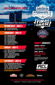 This event has passed. Go to iplayacl.com for more information. Like +1 Add to calendar Google Calendar iCalendar Outlook 365 Outlook Live Details Start: July 3, 2019 @ 12:00 pm End: July 6, 2019 @ 7:00 pm Event Categories: ACL, ACL Championship, ACL National, Blind Draw, Bring Your Own Partner Tournaments, Cornhole Tournaments, Featured, Singles Website: http://www.iplayacl.com/ Organizer: South Florida Cornhole