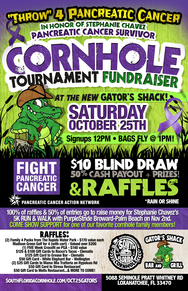 “Throw” for Pancreatic Cancer Fundraiser Cornhole Tournament @ Gator’s Shack.