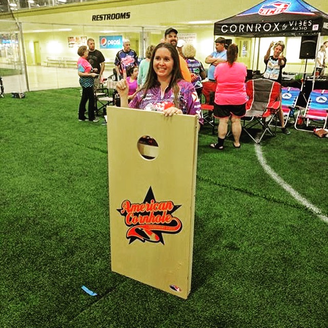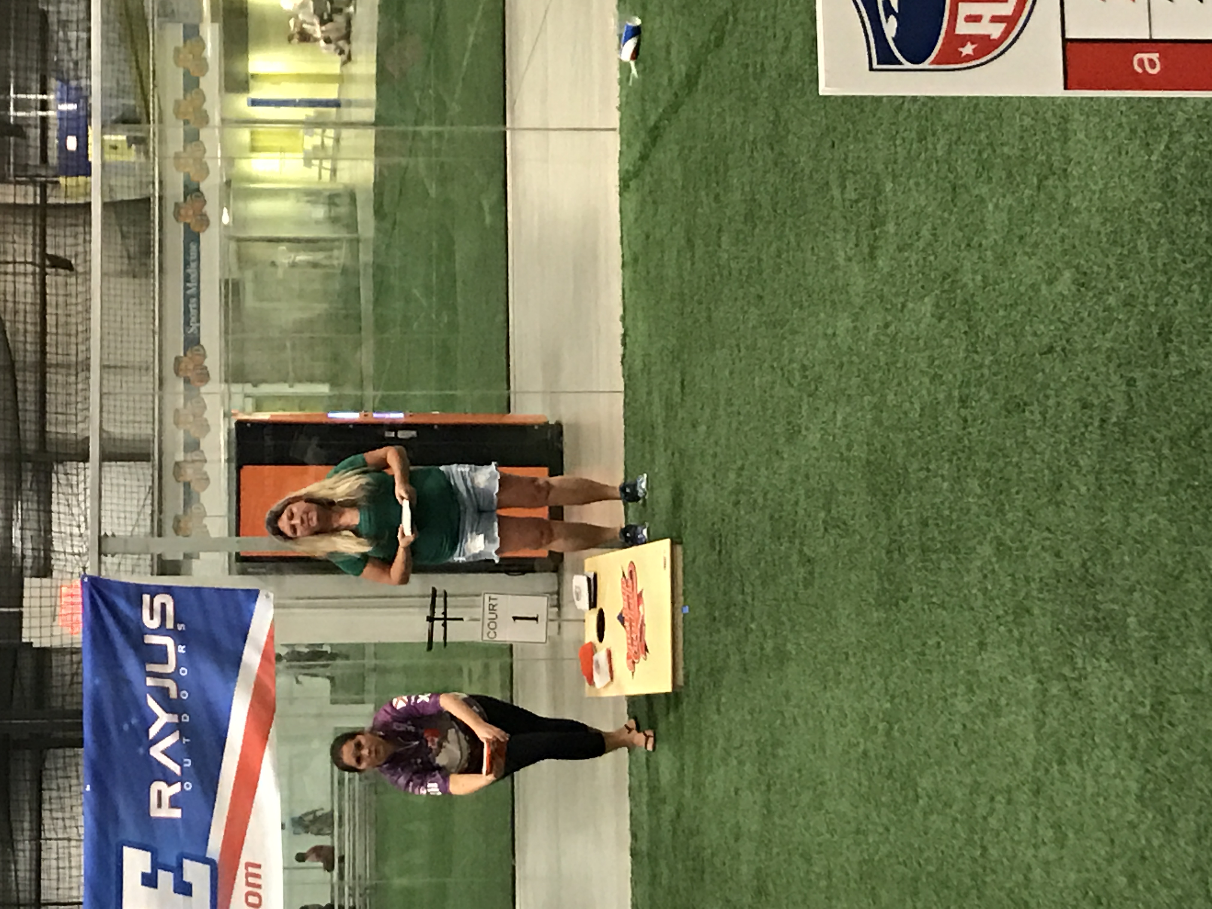 The field was set yesterday evening indoors at the impressive Virginia Beach Field House for the ACO Cornhole Women’s, Seniors and Juniors Major. Rosie Streker went into the tournament with high hopes in earning maximum Season XII points with a 3rd Major Women’s Singles win.  She was able to come out victorious in a field of 32 women in yesterday’s tournament. This completes her 3rd consecutive ACO Major win. Rosie also won the ACO Georgia last month in Peachtree City, Ga in a field of 40 women, and a victory last October in Lakeland, FL